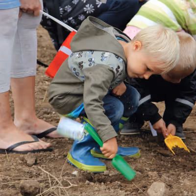 150 børn mødtes den 08.08.2011 sammen med Skanderborgs borgmester til første “skovlestik” på den nye 20 gruppers institution i Hørning.